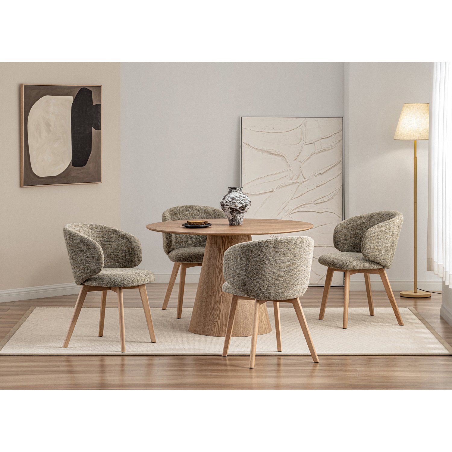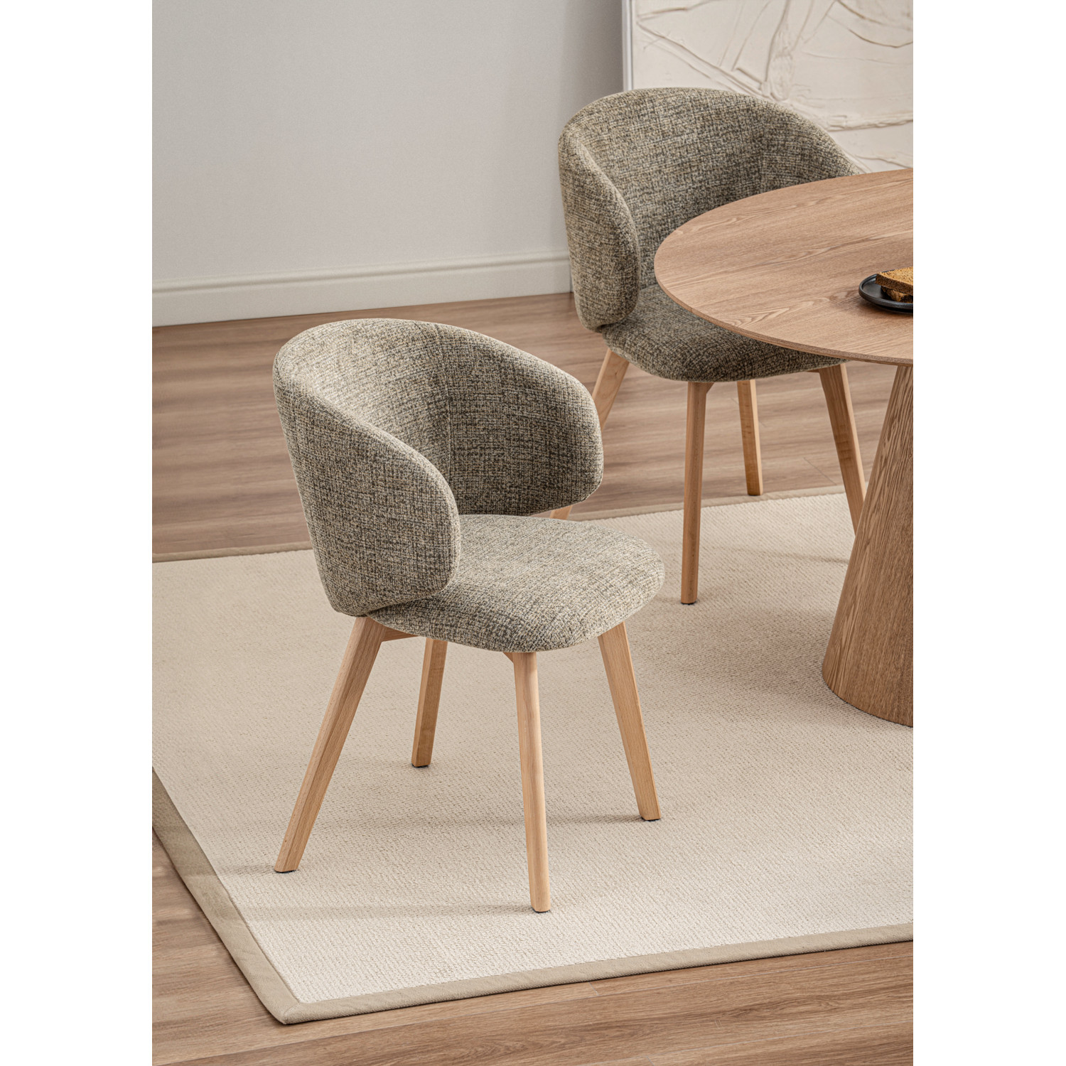 Adora dining chair with Natural colour leg, Stone Grey colour Verde fabric