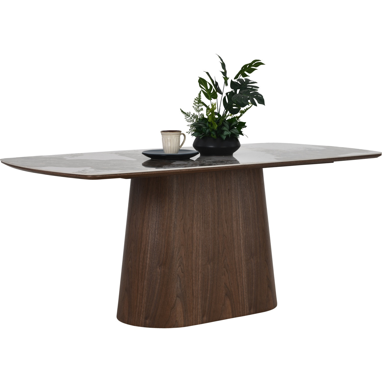 Vigora 900x1800 dining table in Pandora Marble top with Walnut colour leg