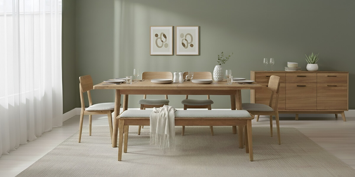 Torrell combines modern design with a cosy, welcoming feel. Warm wood and eco-friendly upholstery create a peaceful atmosphere, offering both style and comfort for a relaxed, chic space.