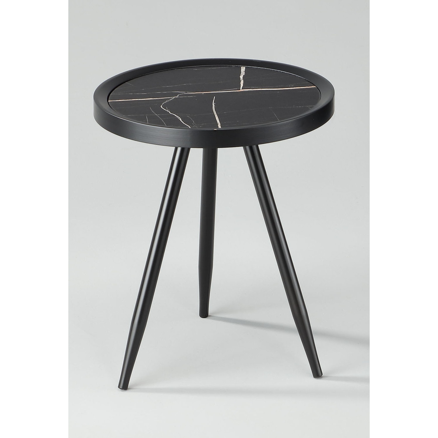 Roundet side table in Black colour top with Matt Black Epoxy steel leg