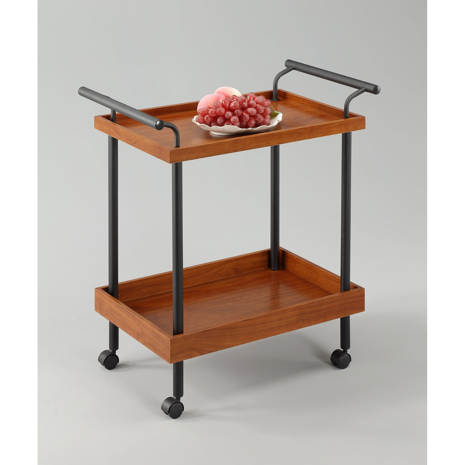 Sermaid serving trolley in Walnut shelves with Matt Black Epoxy steel frame